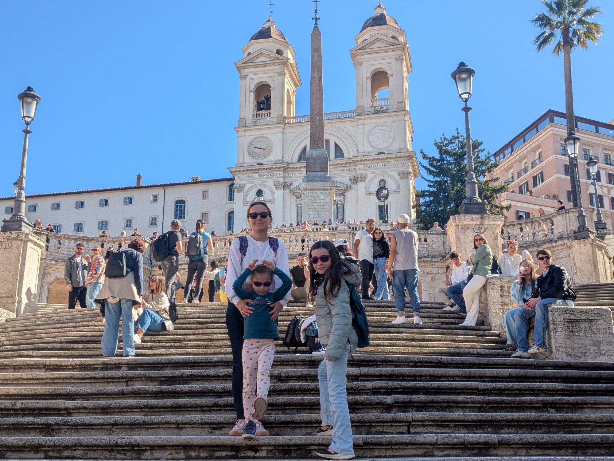 Matinée plus cool aujourd’hui, départ plus tardif, direction la Piazza del Populo, qui n’est pas loin de la Piazza di Spagna. On a lézardé autour de la fontaine sur cette place avant de monter les nombreuses marches permettant d’accéder à l’église de la Trinité-des-Monts qui est l’une des cinq églises officiant en français sur Rome.