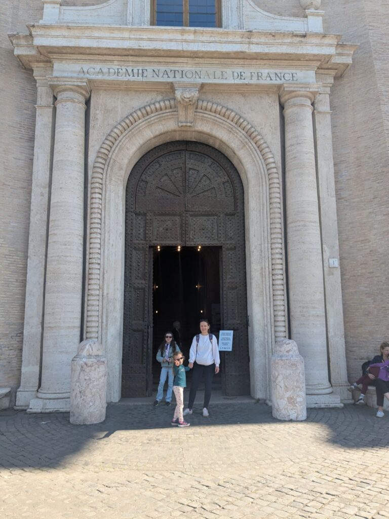 Juste à côté, un peu plus en hauteur se situe la villa Médicis, qui est un bâtiment sous la responsabilité de l’académie française.