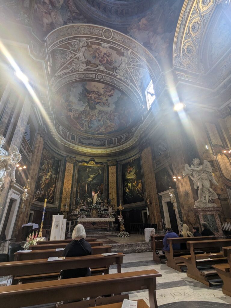 Le prêtre, de la confrérie de l’Emmanuel, est venu échanger quelques mots avec nous. Il nous a demandé si nous allions voir le pape pour le Urbi et Orbi. Heu, non, on passe notre tour, athées que nous sommes 😅